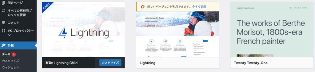 サイトのテーマが「Lightning」に変わります。