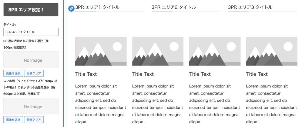 前に紹介したラグイン「VK All in one Expansion Unit」を有効化すると、ウィジェットに「VK 3PR エリア」という項目が追加されるので、これも3つのPRを設定するためのツールです。