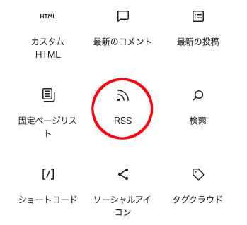 「Ameblo」など外部Blogを表示したい場合は、挿入したい場所で「+」をクリック>「全てを表示」>「RSS」をド ラッグし、「Ameblo」などのURLを設定し、右側メニュー「ブロック」>「設定」で「項目数」や「抜粋を表示」で単語数を設定し、「保存」します。