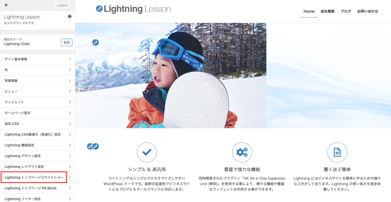 Lightningのトップページ上部は、画像が順番に入れ替わるスライドショー形式になっています。