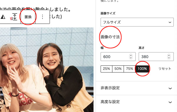 6. 画像をクリックし「置換」アイコンをクリックし、