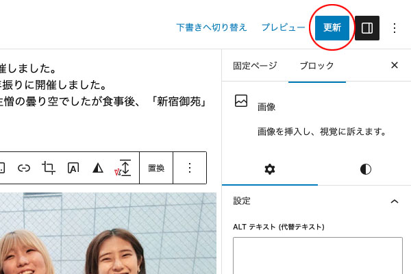 8. 編集が完成したら、右上の「更新」ボタンを押してください。